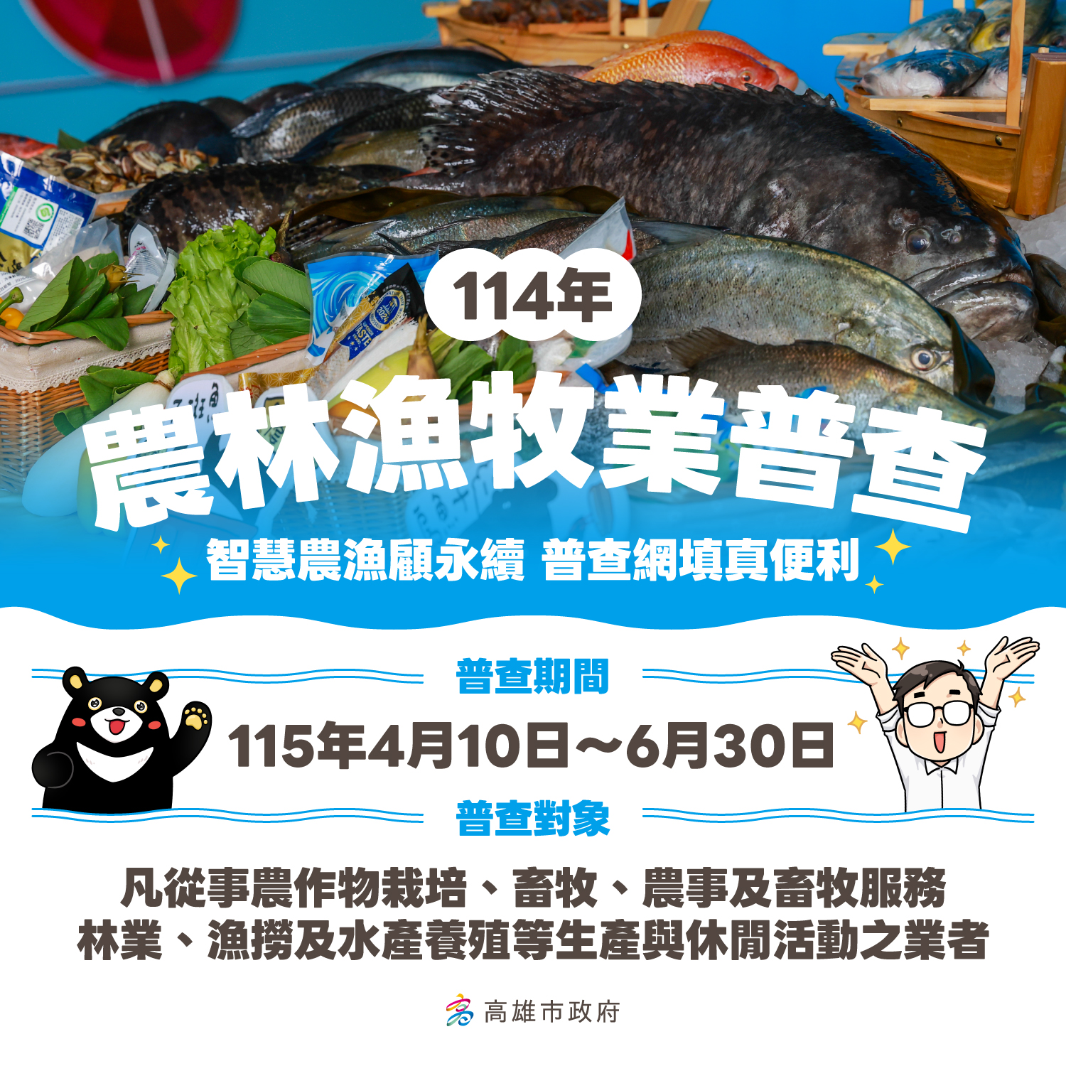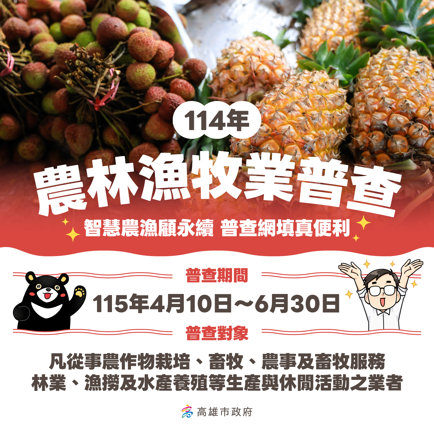 115年4月10日至6月30日將舉辦高雄市「114年農林漁牧業普查」